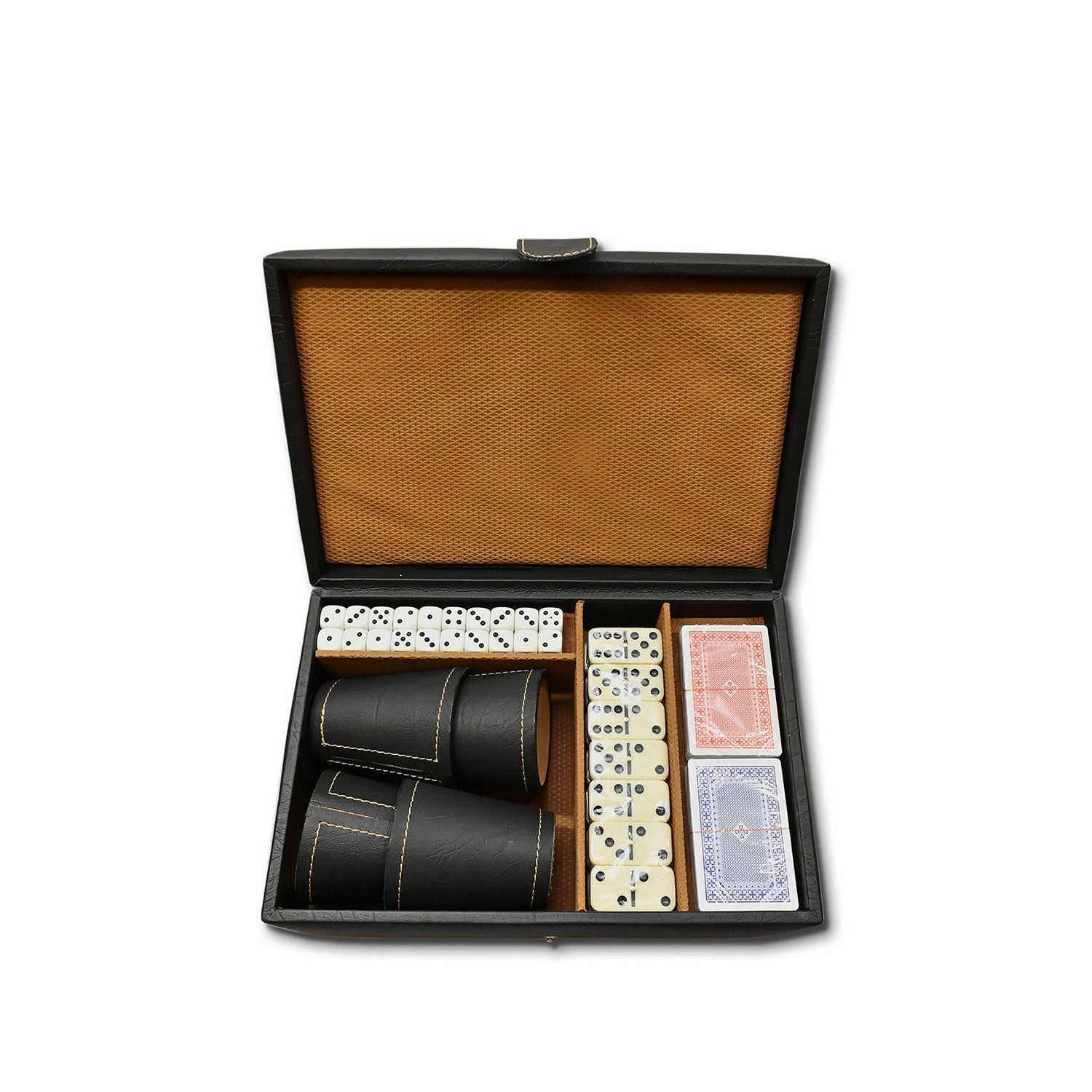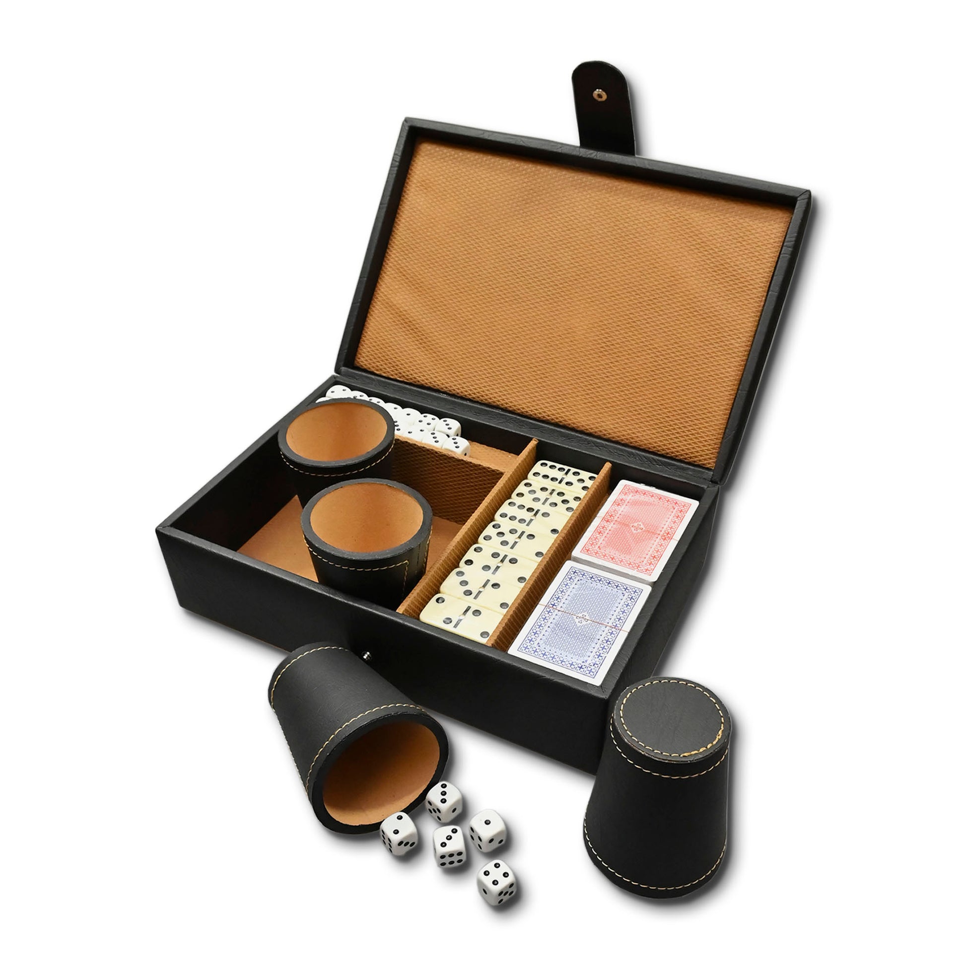 Resistencia y calidad en juegos de mesa con nuestro conjunto de dominó, naipes y dados en Eco Cuero negro de Craftmen. Añade lujo a tus partidas y haz de cada momento de juego una experiencia única. ¡Explora la nueva dimensión de diversión con nuestros juegos de mesa en Eco Cuero!